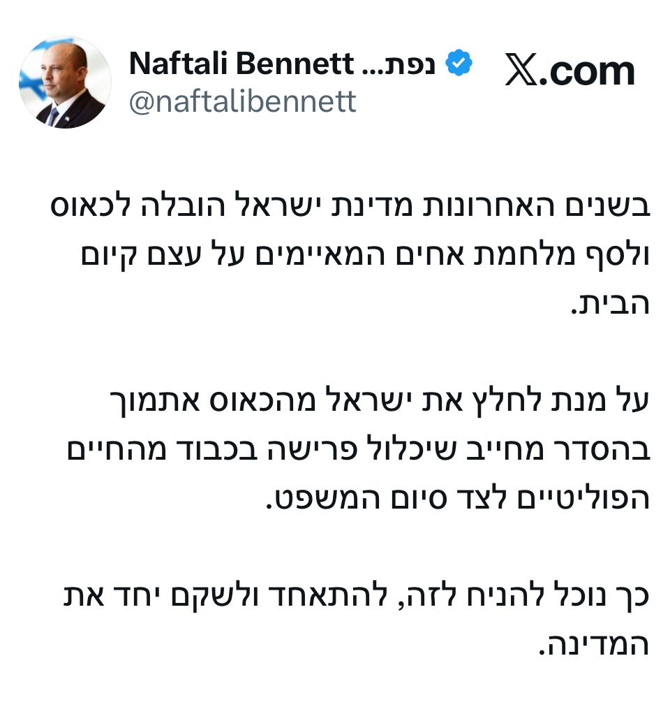 Dans cette atmosphère déjà lourde, où chaque déclaration semble ajouter une pierre supplémentaire au cairn du chaos politique, une voix se détache : celle de Naftali Bennett.